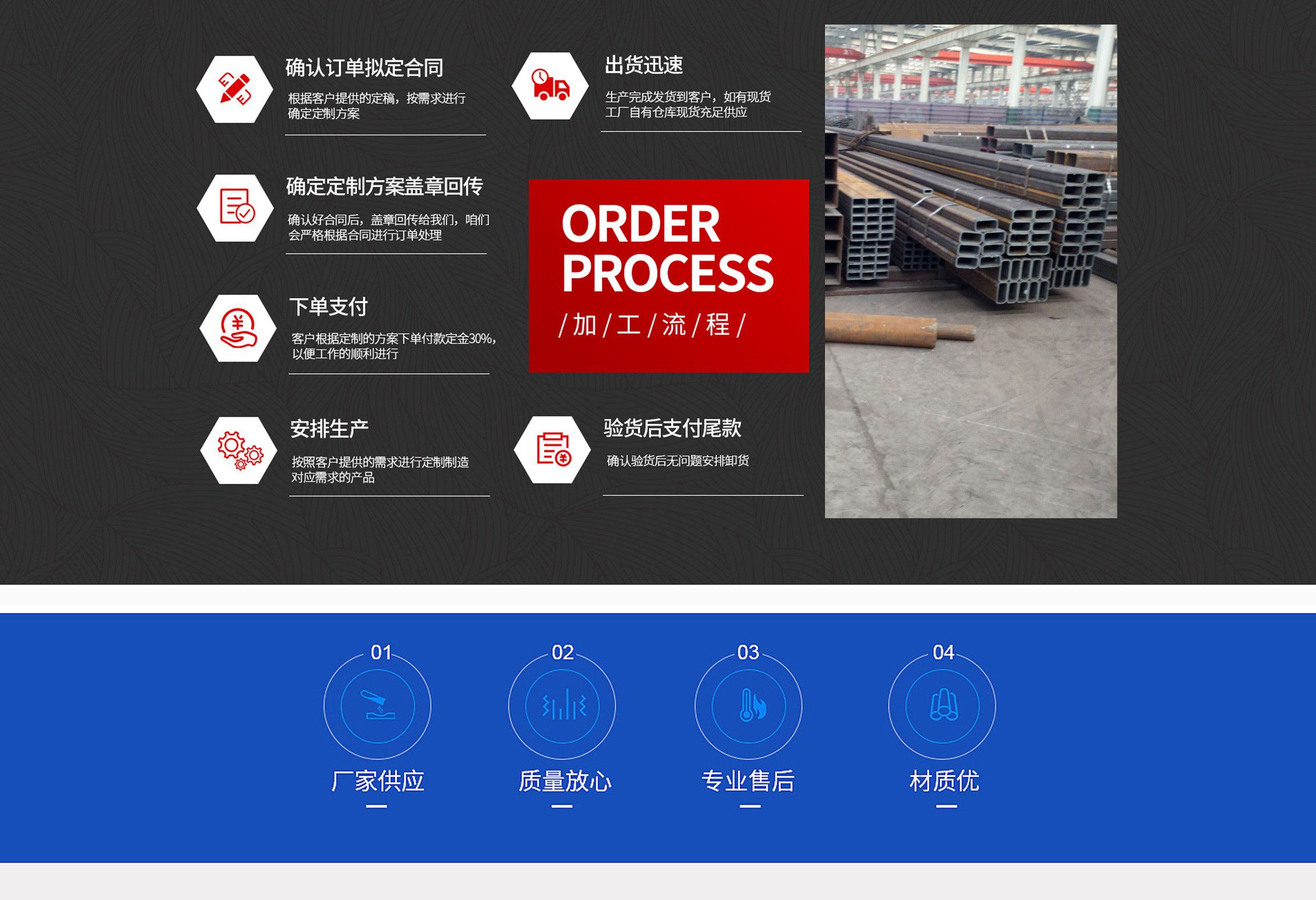聊城市永寶鋼管有限公司主要銷(xiāo)售各種方管產(chǎn)品,主營(yíng)無(wú)縫方管,Q345B無(wú)縫方管,無(wú)縫矩形管,直角無(wú)縫方管,幕墻方管,建筑工程專(zhuān)用方管,無(wú)縫方管廠(chǎng)等,我公司在長(zhǎng)期的生產(chǎn)經(jīng)營(yíng)業(yè)務(wù)中與各大鋼廠(chǎng)建立了長(zhǎng)期穩(wěn)固的業(yè)務(wù)合作關(guān)系。 可提供無(wú)縫方管,無(wú)縫矩形管,直角無(wú)縫方管,幕墻方管,建筑工程專(zhuān)用方管,無(wú)縫方管廠(chǎng),無(wú)縫方矩管,Q345B無(wú)縫方管,Q345E無(wú)縫方管,Q355B無(wú)縫方管,小口徑無(wú)縫方管,厚壁無(wú)縫方管,27simn無(wú)縫鋼管,厚壁無(wú)縫鋼管廠(chǎng)家,無(wú)縫方矩管,45#無(wú)縫鋼管,20cr無(wú)縫鋼管,大口徑無(wú)縫鋼管,小口徑無(wú)縫鋼管,厚壁無(wú)縫鋼管,薄壁無(wú)縫鋼管,Q345C無(wú)縫鋼管,Q345D無(wú)縫鋼管等產(chǎn)品。目前是華東地區(qū)規(guī)模較大的方管經(jīng)營(yíng)企業(yè)之一。產(chǎn)品廣泛用于汽車(chē)行業(yè)、礦山、農(nóng)業(yè)機(jī)械、石化石油機(jī)械、工程機(jī)械、核電工業(yè)、高用量變壓器、衛(wèi)星發(fā)射塔、造船、玻璃機(jī)械、塑料機(jī)械、紡織印染機(jī)械及其他各種機(jī)械等眾多行業(yè)。 公司上千種規(guī)格、材質(zhì)任您選購(gòu),我公司將以熱情的服務(wù),優(yōu)惠的價(jià)格回報(bào)新老客戶(hù),我們熱情歡迎來(lái)電/來(lái)人垂詢(xún)、洽談!隨時(shí)恭候您光臨惠顧!公司以“永不滿(mǎn)足、志在超越”的企業(yè)精神,以不斷創(chuàng)新的新經(jīng)濟(jì)理念不斷創(chuàng)造新的輝煌。以良好的產(chǎn)品奉獻(xiàn)當(dāng)代社會(huì),以滿(mǎn)意的服務(wù)酬謝四海賓朋。本公司愿與國(guó)內(nèi)外各界朋友密切合作,攜手共創(chuàng)...